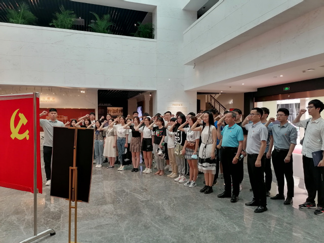 现场参观结束后,支部党员面向党旗重温入党誓词,坚定理想信念,牢记初心使命。