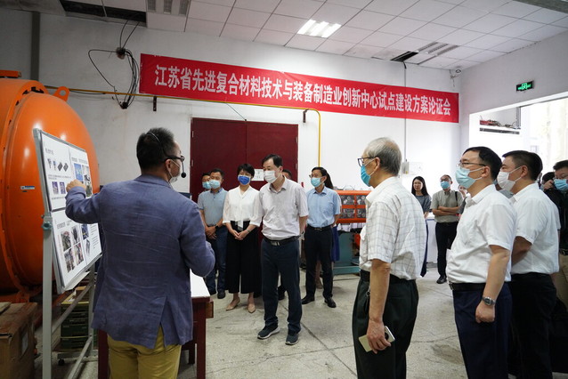 会前,江苏省工信厅、南京市工信局、浦口区领导和专家组现场考察了我校先进复合材料成形实验室,了解了创新中心开展的实际工作并给予建设指导。