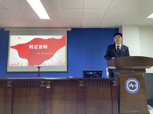 此次答辩分为个人陈述和回答问题两个环节。每个预备党员依次上台就个人情况、预备期表现(学业成绩、科研创新、志愿服务、学生工作等)、对党的认识、存在问题及今后努力方向等情况进行陈述。陈述结束后由评委进行提问,同志们现场作答,问题内容包含党的十九届六中全会精神、答辩人个人情况和党的基础理论知识等。