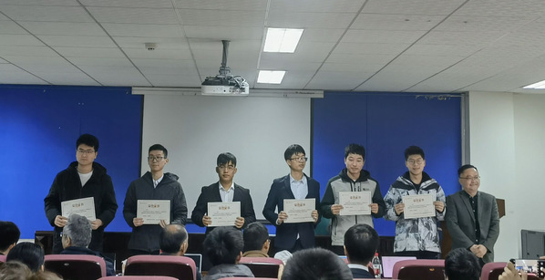 经过现场答辩的激烈角逐,由左清宇小组设计的全自动草方格沙障铺设无人车和由邢子霖小组设计的仿白掌长臂猿智能机械臂机器人获得一等奖,其余6件参赛作品获得二等奖。南京易威乐总经理程浩,安徽永成机电工程师徐京城分别为一等奖和二等奖获奖队伍同学颁发证书。8件校赛获奖作品全部推荐参加明年春季的省赛。