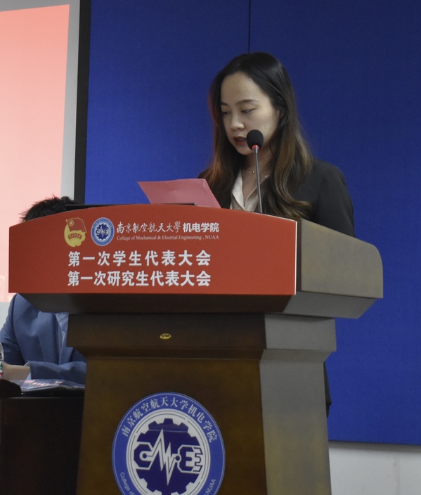 开幕式上,校研究生会主席团成员李奕霖对本次学代会、研代会的召开表示祝贺,她对机电学院学生会、研究生会近一年来开展的的各项工作给予了充分的肯定,也希望机电学院学生会和研究生会进一步加强自身建设,全面深化改革,为青年人才自我发展、自我实现提供更广阔的空间舞台。