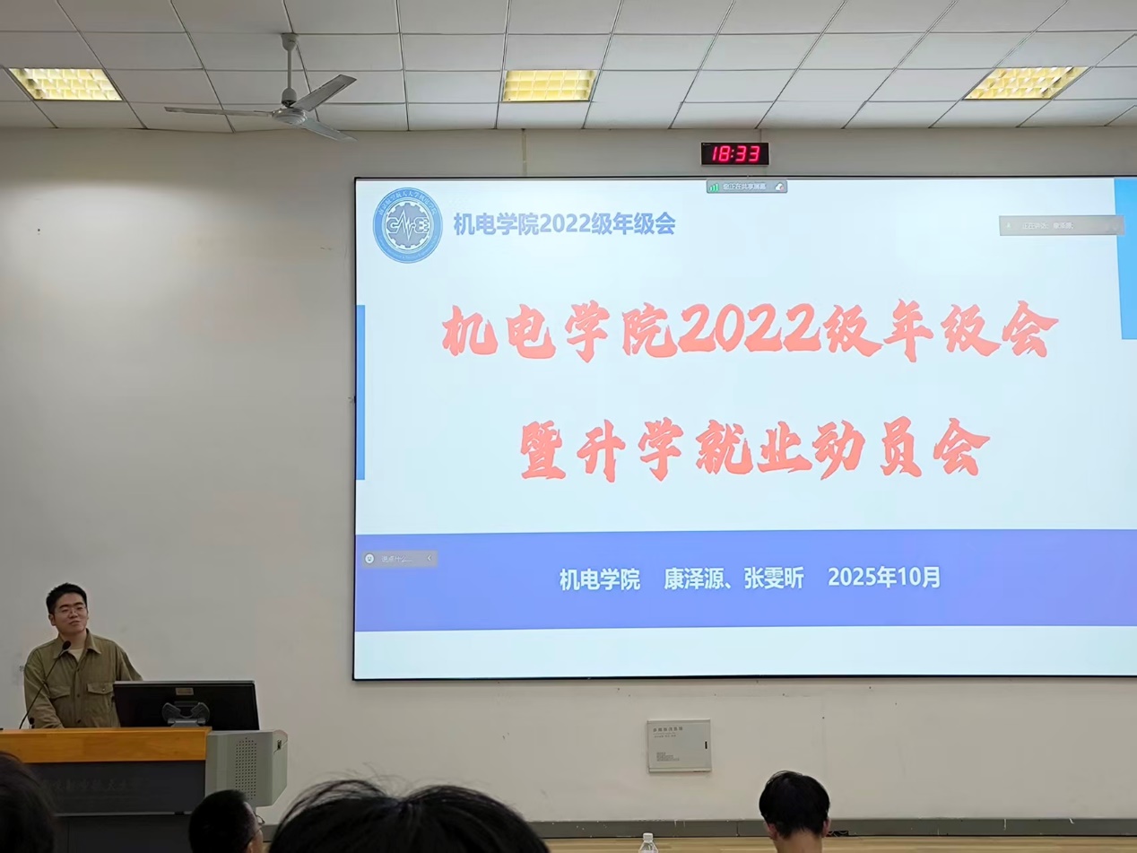 为进一步切实做好机电学院2026届毕业生升学就业指导服务工作,提高学生升学就业的积极性、主动性,10月30日,机电学院于明故宫校区13号楼报告厅召开2026届本科生升学就业动员会。2022级本科生辅导员康泽源、张雯昕以及全体2026届本科毕业生共同参加本次会议。