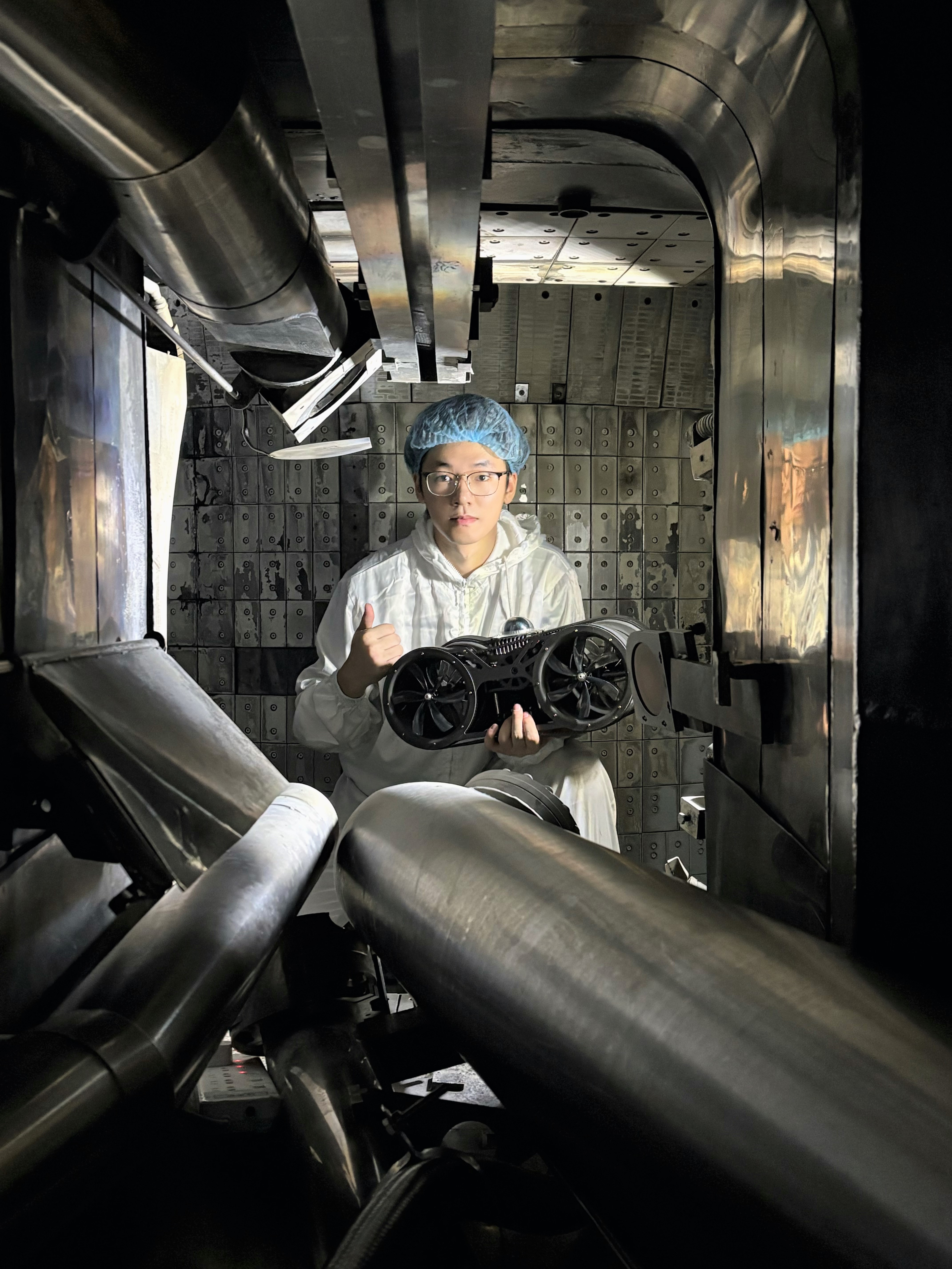如果说团队的长期积累是滋养成长的沃土,那么2023级研究生徐友直,就是那颗奋力破土、向阳生长的种子。三年前,刚踏入南航校园的徐友直,便一头扎进了这个与等离子所联合培养的合作研发项目中。作为项目技术骨干,他全程参与国家重大科技基础设施项目——聚变堆主机关键系统综合研究设施,把青春的汗水挥洒在国家需要的地方。为了让这台飞行器真正“管用”,真正能在聚变堆内发挥作用,徐友直和团队成员没有把自己关在实验室里闭门造车,而是选择脚踏实地,一次次奔赴中科院等离子体物理研究所,深入聚变装置内部,只为获取最真实、最关键的一手数据,让每一次改进都有坚实的依据。
